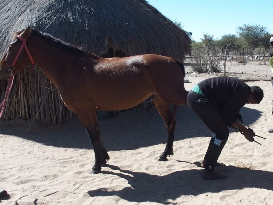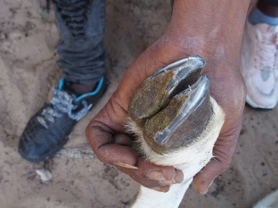 Seit 2004 arbeitet LEC eng mit Nutztierhaltern in Kaudwane und acht umliegenden „Cattle posts“ zusammen, um die Probleme von überwachsenen und vernachlässigten Hufen bei Rindern, Kleinnutztieren, Pferden und Eseln anzugehen. Die Hufgesundheit wird im ländlichen Nutztiermanagement oft unterschätzt, dabei spielt sie eine entscheidende Rolle für das Wohlbefinden und die Produktivität der Tiere. Überwachsene Hufe schränken die Beweglichkeit ein und erschweren es den Tieren, Weideflächen und Wasserstellen zu erreichen. Dadurch steigt ihr Risiko, Raubtieren wie Löwen, Wildhunden, Schakalen oder Leoparden zum Opfer zu fallen. Ausserdem führen schlechte Hufzustände zu Schmerzen, Lahmheit und einer höheren Anfälligkeit für Infektionen – was wiederum die Produktivität und den Marktwert der Tiere senkt.