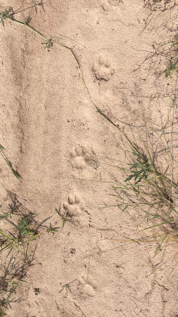 Im Zentrum dieses Projekts steht die Kombination aus modernster Technologie und traditionellem Wissen. Ausgewählte Leoparden und Löwen im Schutzgebiet werden mit GPS-Halsbändern ausgerüstet. Diese zeichnen Tag und Nacht ihre Standorte auf und ermöglichen es unseren Forschern, Bewegungsmuster über riesige Wildnisgebiete hinweg zu erkennen. Bleibt ein Löwe oder Leopard mehrere Stunden an einem Ort, ist das oft ein Hinweis auf einen Riss. Dann macht sich unser Feldteam auf den Weg, um den Ort zu untersuchen. Erfahrene San-Tracker, bekannt für ihre Fähigkeit, feinste Zeichen im Sand zu deuten, bestätigen, ob tatsächlich eine Jagd stattgefunden hat. Gemeinsam dokumentiert das Team, welche Tierart erbeutet wurde, wie das Fressverhalten aussah und ob andere Raubtiere oder Aasfresser beteiligt waren. Diese Methode verbindet moderne Wissenschaft mit uraltem Wissen. Die Technologie liefert die Hinweise – aber es ist die menschliche Erfahrung vor Ort, die die Geschichte lebendig macht. Jeder bestätigte Riss ergänzt unser Bild davon, wie Leoparden und Löwen in der Kalahari überleben.