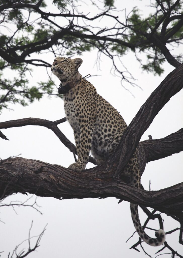 Leoparden sind noch scheuer als Löwen und leben alleine. Sie verlassen sich nicht auf Kraft oder Kooperation, sondern auf ihre Fähigkeit, unbemerkt zu bleiben. Meist erlegen sie mittelgrosse Beutetiere, die sie dann oft in Bäume ziehen, um sie vor grösseren Konkurrenten zu sichern. Weil Leoparden so schwer zu beobachten sind, sind GPS-Daten besonders wertvoll, um ihre Ernährungsgewohnheiten und Bewegungsmuster zu verstehen. Genau wie Löwen greifen auch sie manchmal Nutztiere an, wenn sich die Gelegenheit in der Nähe von Siedlungen bietet. Indem wir diese Ereignisse dokumentieren, können wir Muster erkennen und herausfinden, wo Konflikte am ehesten auftreten – und dort gezielt Massnahmen ergreifen.