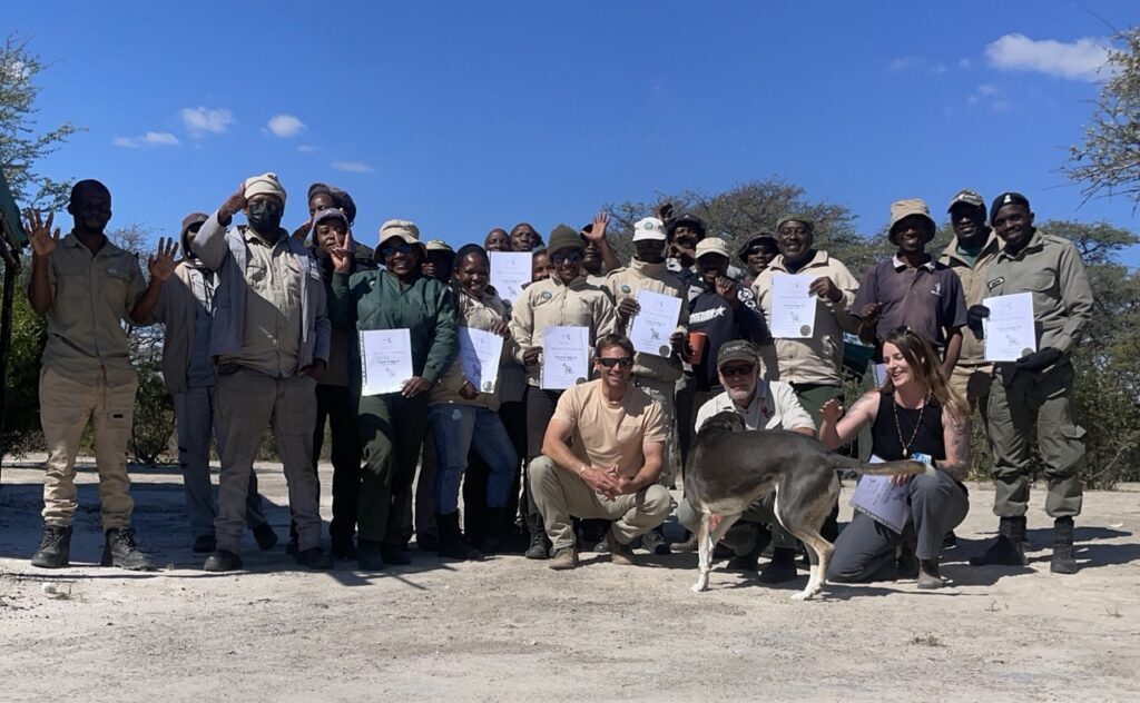 Ein Kernpunkt unserer Arbeit ist die Ausbildung lokaler Fachkräfte. 2024 haben wir Mitarbeiter der Behörde für Wildtiere und Nationalparks (DWNP) in der Bedienung von GPS-Technologie geschult. San-Tracker, die ihr Wissen bisher ausschliesslich traditionell nutzten, arbeiten nun zusätzlich mit digitalen Tools wie CyberTracker und tragen Daten in Echtzeit ein. So wird das Wissen in die Gemeinschaft zurückgetragen und bleibt nachhaltig bestehen.
